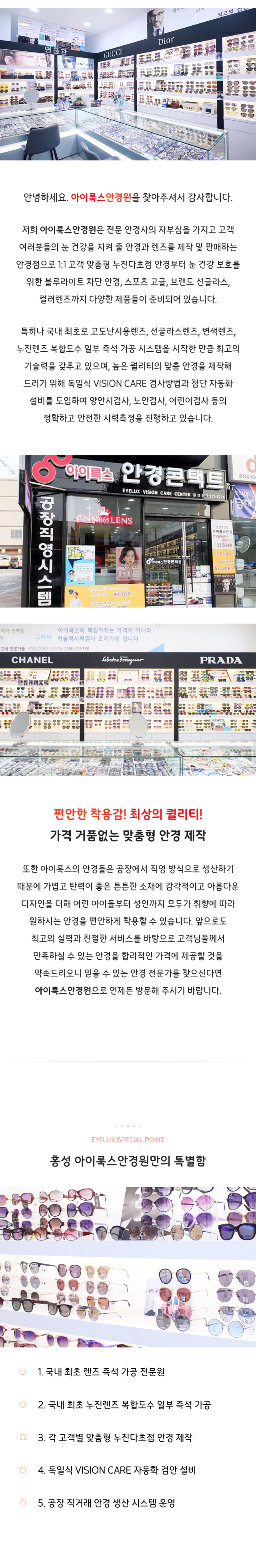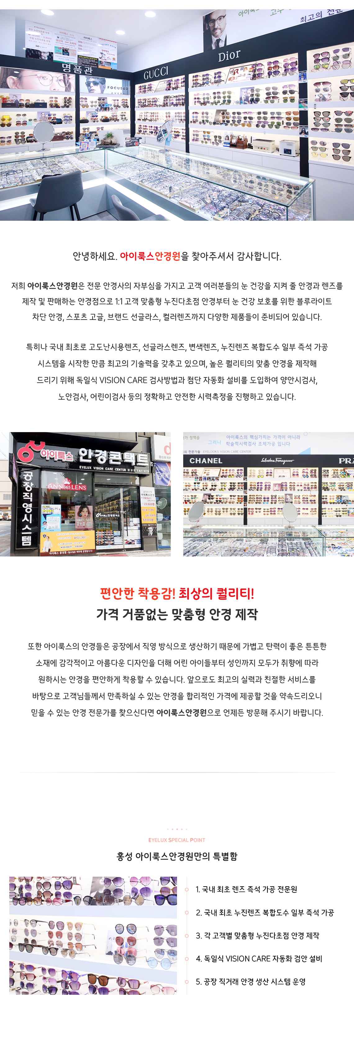 상호 : 아이룩스안경원 대표자명 : 이재용 대표번호 : 041-631-6226 사업자번호 : 148-50-00592 주소 : 충남 홍성군 홍성읍 의사로36번길 42-1